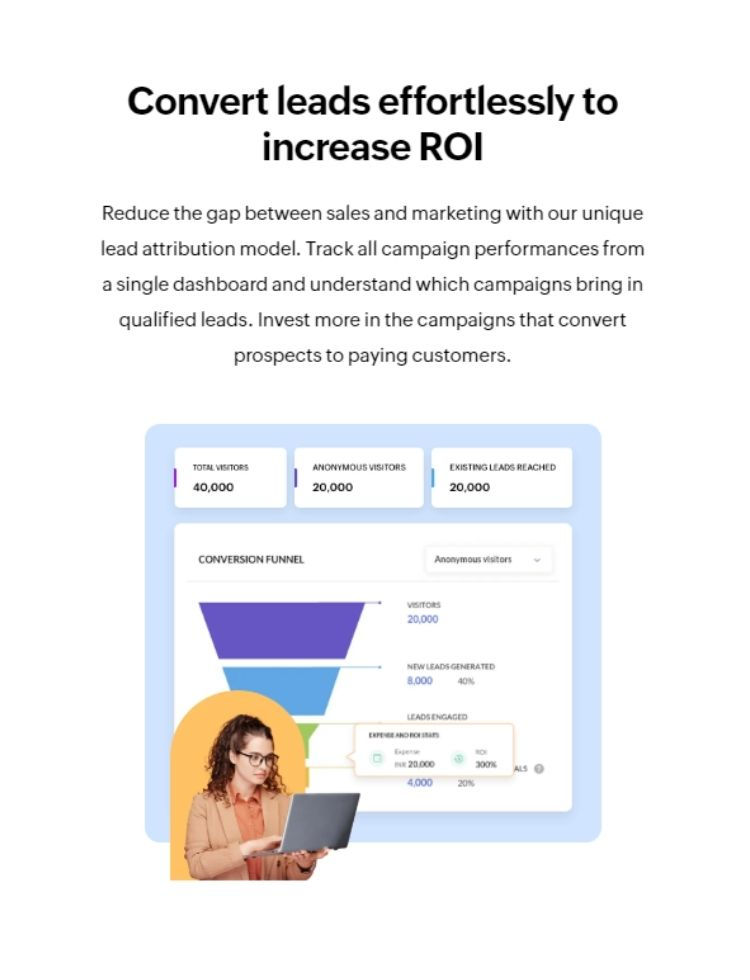 Zoho Marketing Automation stands out as a robust platform that integrates seamlessly into your existing workflows, offering a suite of powerful features: